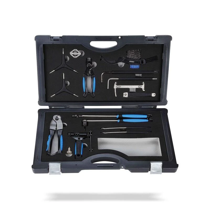 Boîte à outils ultra solide composée des 16 outils d’entretien de vélo les plus utilisés.