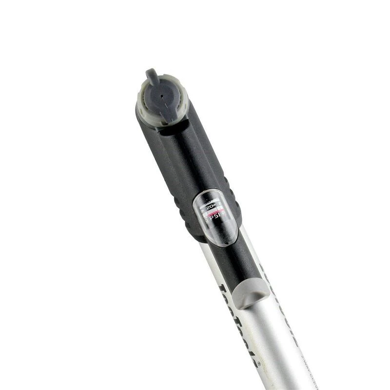 La mini pompe pour vélo est équipée d’une valve en aluminium, d’un manomètre et est compatible avec les valves Presta, Shrader et Dunlop.