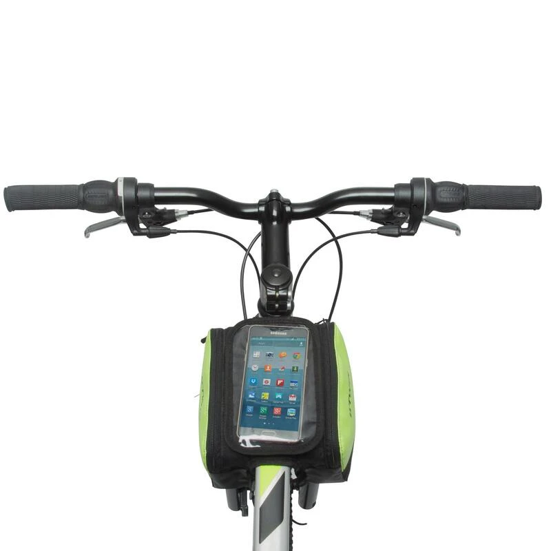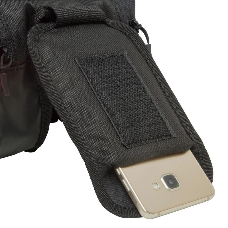 Nos équipes ont développé cette sacoche de cadre pour transporter vote téléphone et vos petits effets personnels.Une sacoche qui se fixe derrière la potence pour garder ses affaires sous les yeux et à portée de main.